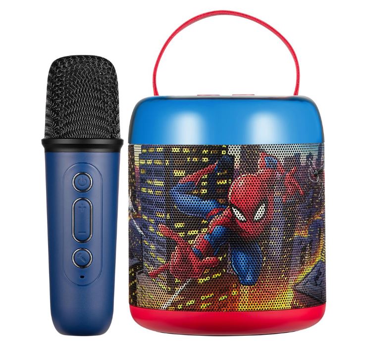 Disney Spiderman karaoke speaker with microphone, a fun way for kids to sing along to their favorite tunes.