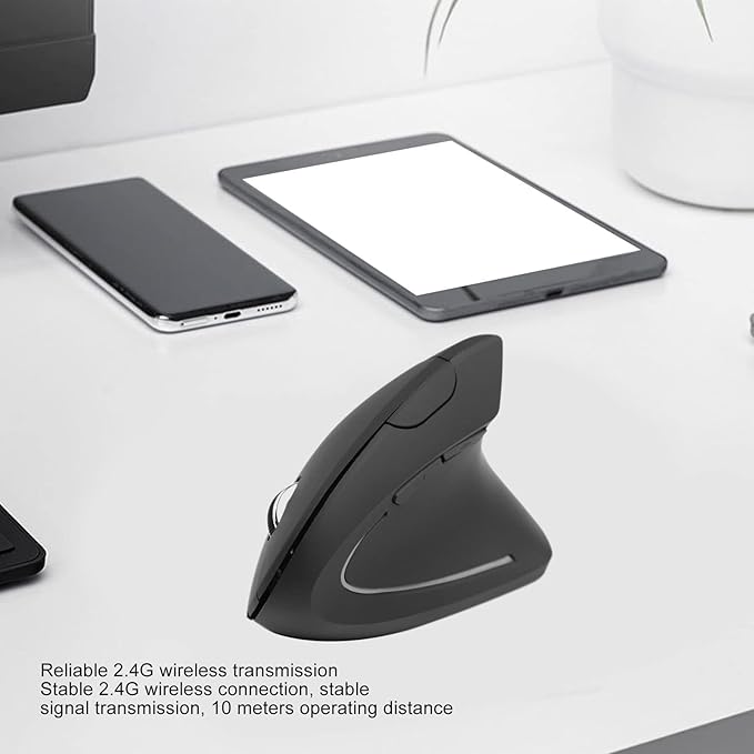 Novaro ergonomic vertical wireless mouse operating at 2.4GHz, designed for comfort. Includes a free mousepad.